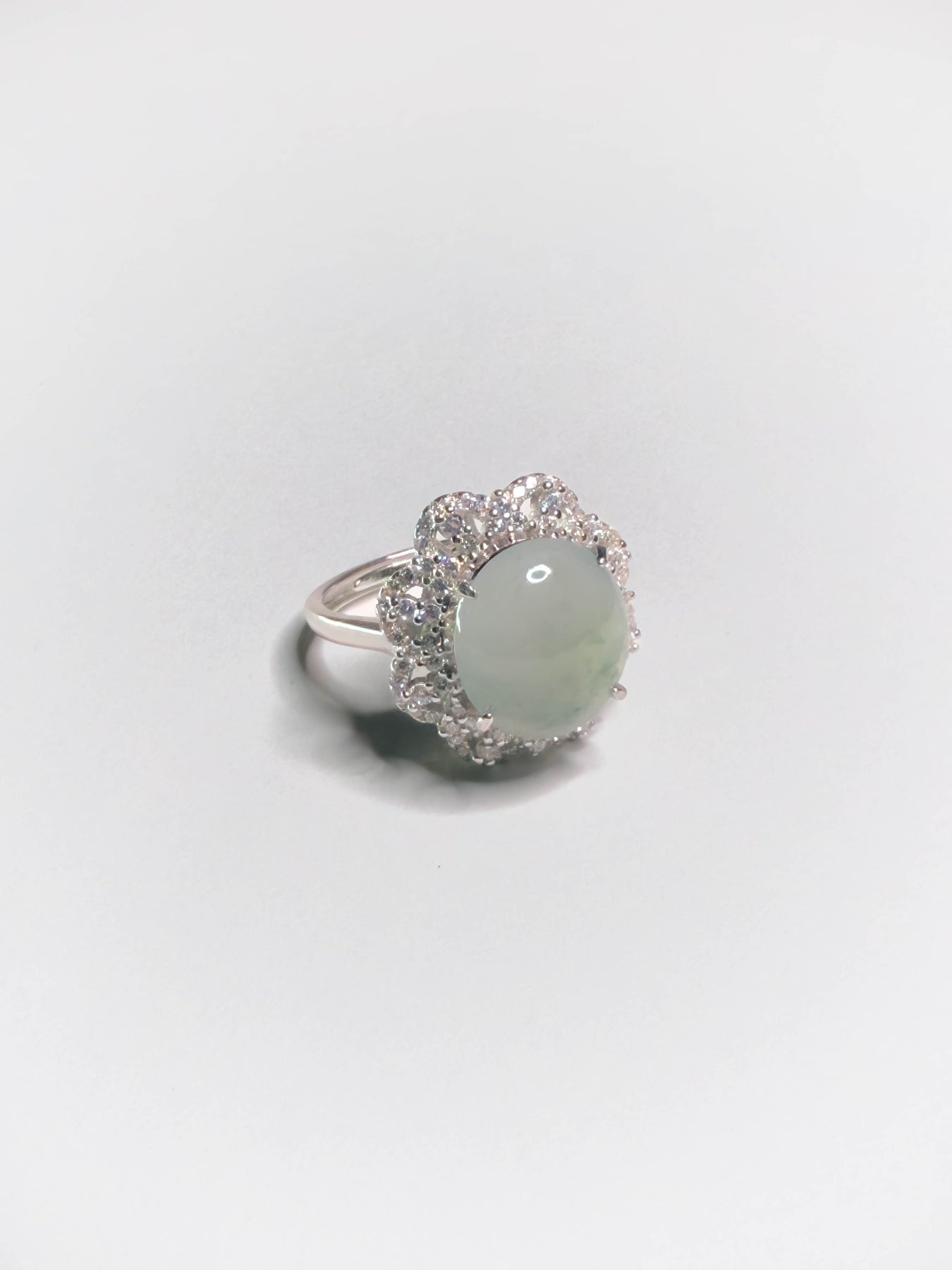 泠caéne (莫西沙糯冰種晴水飄花) 如冰川融水,帶一縷溫柔流動的氣息。飄花像霧氣在晨間山谷間散開,淨透且靜謐。